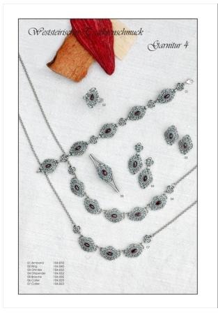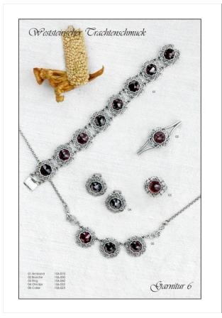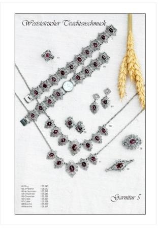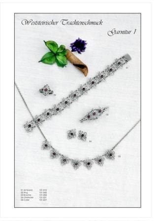 Gefertigter Trachtenschmuck aus Silber mit Granaten und div.anderen Edelsteinen.Alle Modelle sind einzeln oder als Set erhältlich.